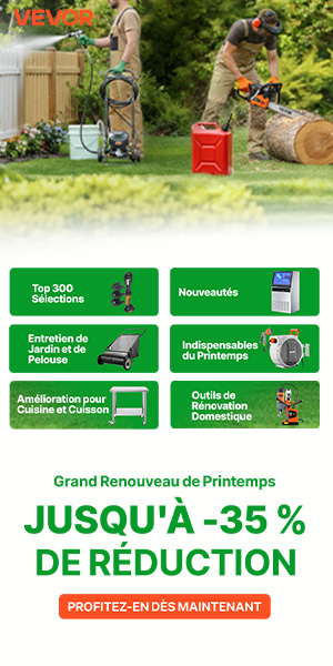Améliorez votre maison et espace de travail avec la Vente Printemps VEVOR. Jusqu'à 40% de remise sur jardin, cuisine, auto, outils et construction.